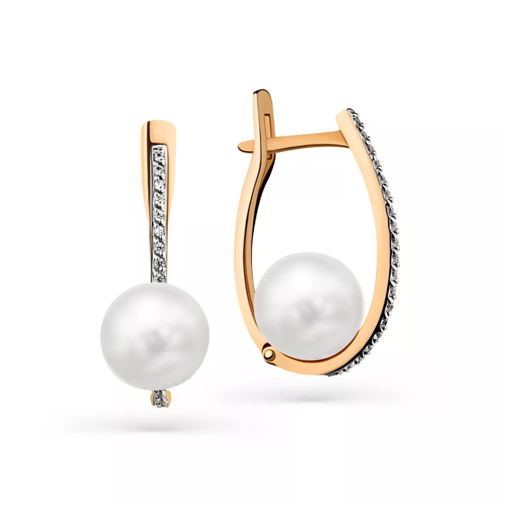 Серьги с жемчугом и фианитом из золота Артикул: 02-3-219-0501-011