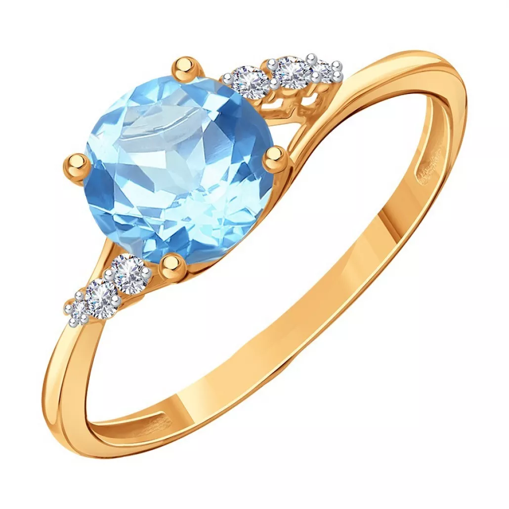 Кольцо с топазом и фианитом из золота Артикул: Т14301Д959